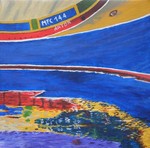2010Detail van het voorste deel een vissersbootje.