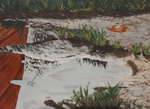 2009Zomers Terras met schaduwen. Geschilderd in complementaire kleuren.